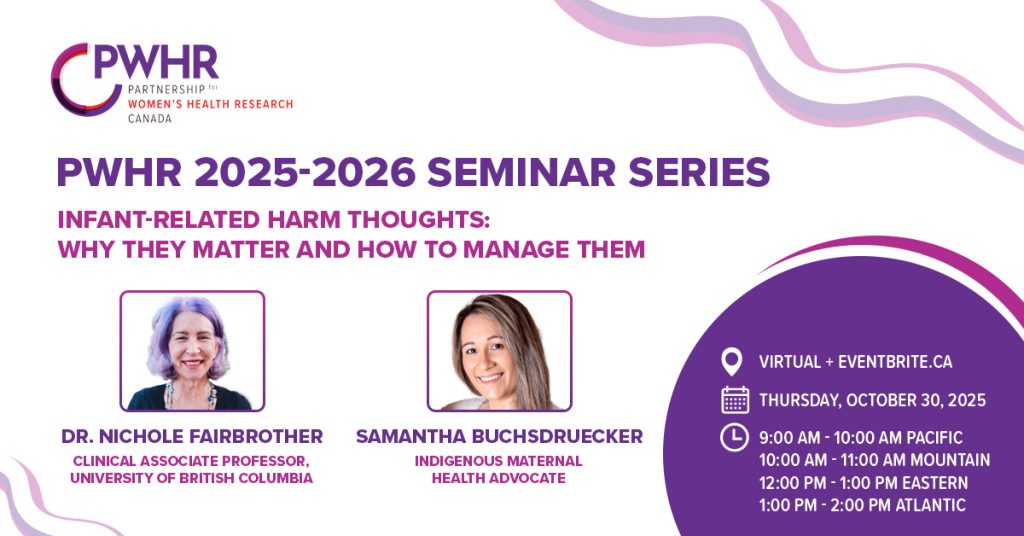 The 2023-2024 PWHR Women’s Health Research Seminar Series explored research driving advances in healthcare for women, trans and non-binary people. Whether they are working at the bench to advance basic science, at the bedside, or with the broader health, social, and economic policies and systems that shape individual and population health, a fundamental goal of women’s health researchers is to improve healthcare. This seminar series highlights how researchers from across Canada are realizing PWHR’s vision of “Better health for all women, trans and non-binary people through research equity, excellence, and inclusion.”